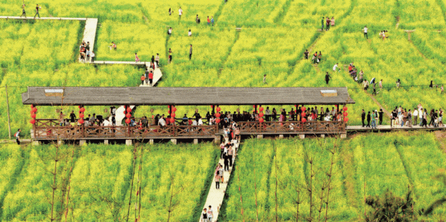 每年,广州梯面都会举办油菜花旅游文化节。徒步结束后,还可以在活动现场,沉浸式感受梯面“豆香小镇”的独特魅力与客家民俗风情——品尝花泉豆腐花、油菜花饼等本地特色美食,选购花都优质农产品、客家手工艺品,解锁徒步之外的额外乐趣。