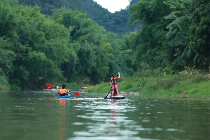 迎着阳光,划着桨板,在蓝天白云下,在清澈的湖水中,只要一块板、一只桨,自由的穿梭在这片优美的自然风光里。