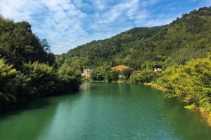 沿途苍翠绵延竹海、田园风光、九曲十八弯古水河,