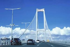 属于世界最大跨径全离岸,海中钢箱梁悬索桥