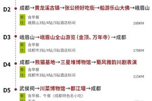 第2天:成都-黄龙溪古镇-张公桥好吃街-船游乐山大佛-峨眉山(收取旅游费用总额50%的损失费)