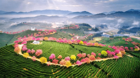 有着“中国醉美樱花圣地”的美誉,42个品种樱花,最大的特色是5万多亩的茶园,15万多万株樱花沿着茶园道路而种。