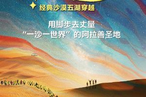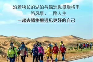 今日沿途可远眺月亮湖(不进入湖内),碧绿湖水、漫漫黄沙、蔚蓝天空在这里交织成一个美妙的画卷,继续行走10公里到达终点! 领队在终点为大家颁发奖牌,集沙瓶,合影留念;午餐过后,大家一起返回银川解散。