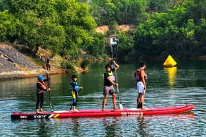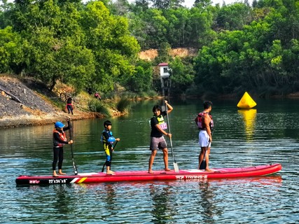 学习掌握桨板基本操作,水上安全知识,跟随老师走进碧绿湛蓝的矿坑水库畅游亲水的快乐。有趣的团队水上活动,体验一把神奇的“水上漂”,利用桨板摆出各种高大上的趣味团体造型,在泛舟水上感受清风徐徐,随手一拍都是大片。