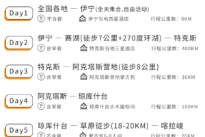 温馨提示:解散时,先送达伊宁机场,飞机离开的驴友请预定18点以后得航班。后抵达火车站,火车离开的驴友请预定17点以后得火车班次。如需留在伊宁继续游玩的驴友需要住房可以提前联系客服代订。