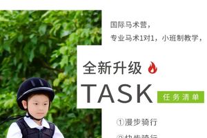 骑乘训练:回顾与学习、牵马行走、上下马、慢步、快步、打浪与压浪、直行与绕桩、独立骑行成果展示