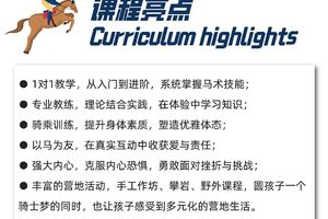 通过系统学习让孩子完成独立骑乘,掌握正确规范的马术技巧。对马术竞赛、礼仪、装备,马匹护理等相关知识有全新的认识与理解,让孩子真正的认识和参与马术运动。