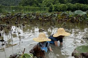 穿上渔裤 、 趟泥塘 、 下塘寻藕