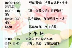 增加一成人/小孩加收100元/人,含1斤莲藕+1斤红薯、农场营位、藕粉;