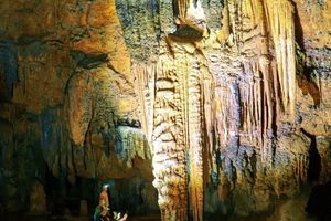 在这个令所有感官都活跃起来的地下世界里,唯见的是越变越小的洞口,灯光,手电筒所照地方,石笋钟乳石、石柱石幔......都在发光,水声滴答。