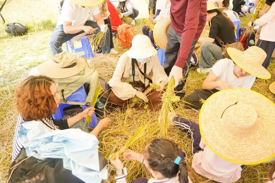 一起走进田野,挥镰割稻、脱粒扬谷、制作农家美食,