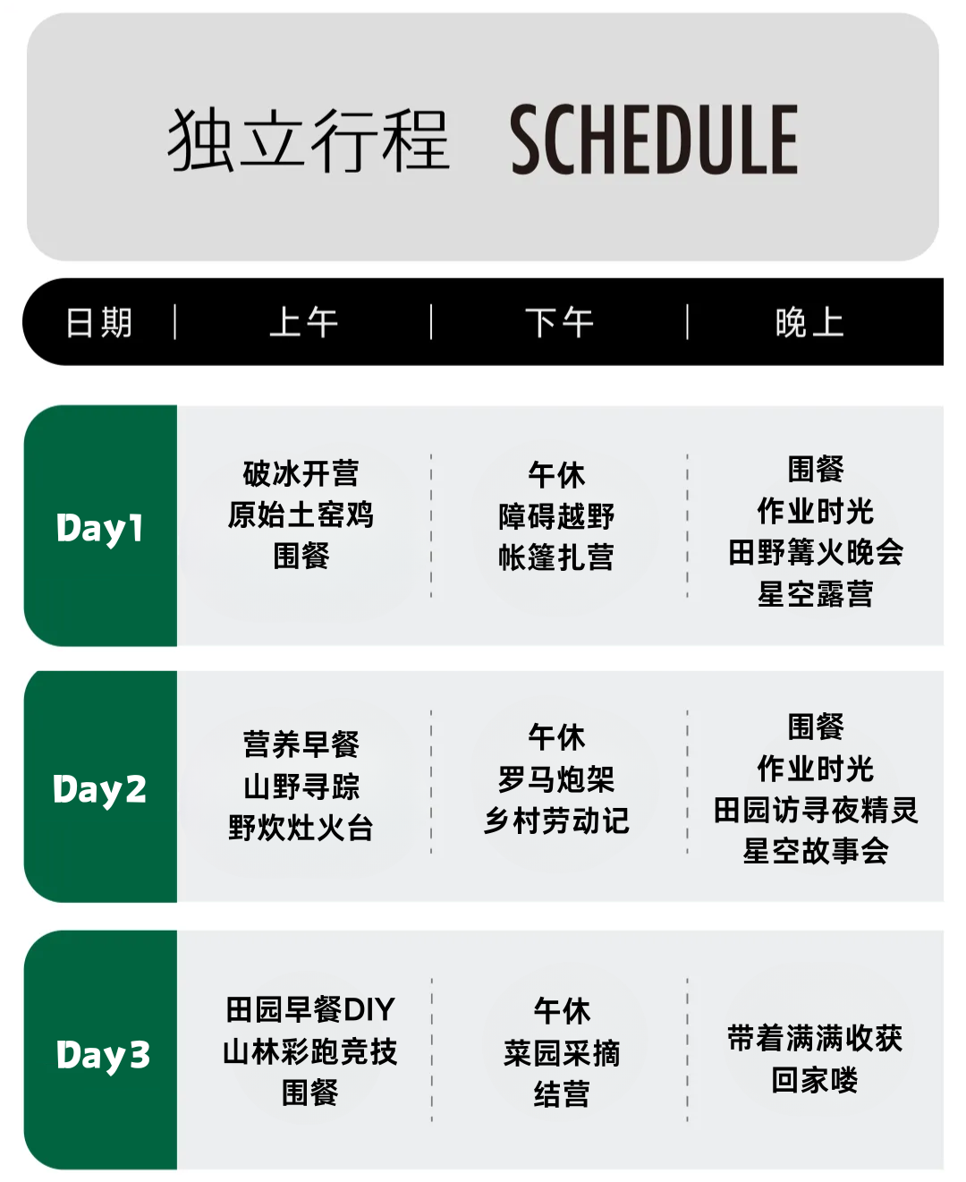 1、课程设计费、活动策划费、全程活动导师、研学物料费、活动餐费(5正2早)、往返大巴车费、住宿费(双人帐篷)
