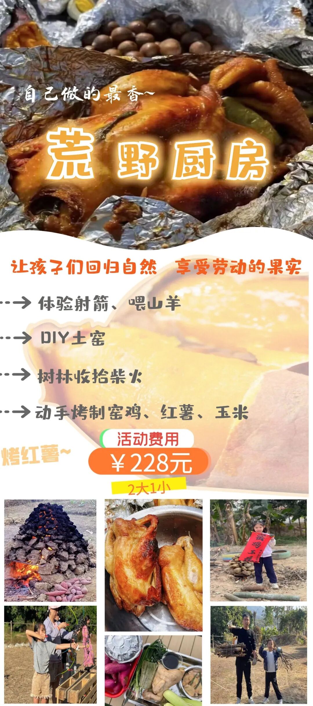 半天场地营位费用、一只鸡+8条红薯+3条玉米、一份腌制材料(如需添加多一份按18元/份加收);不含其他餐食;