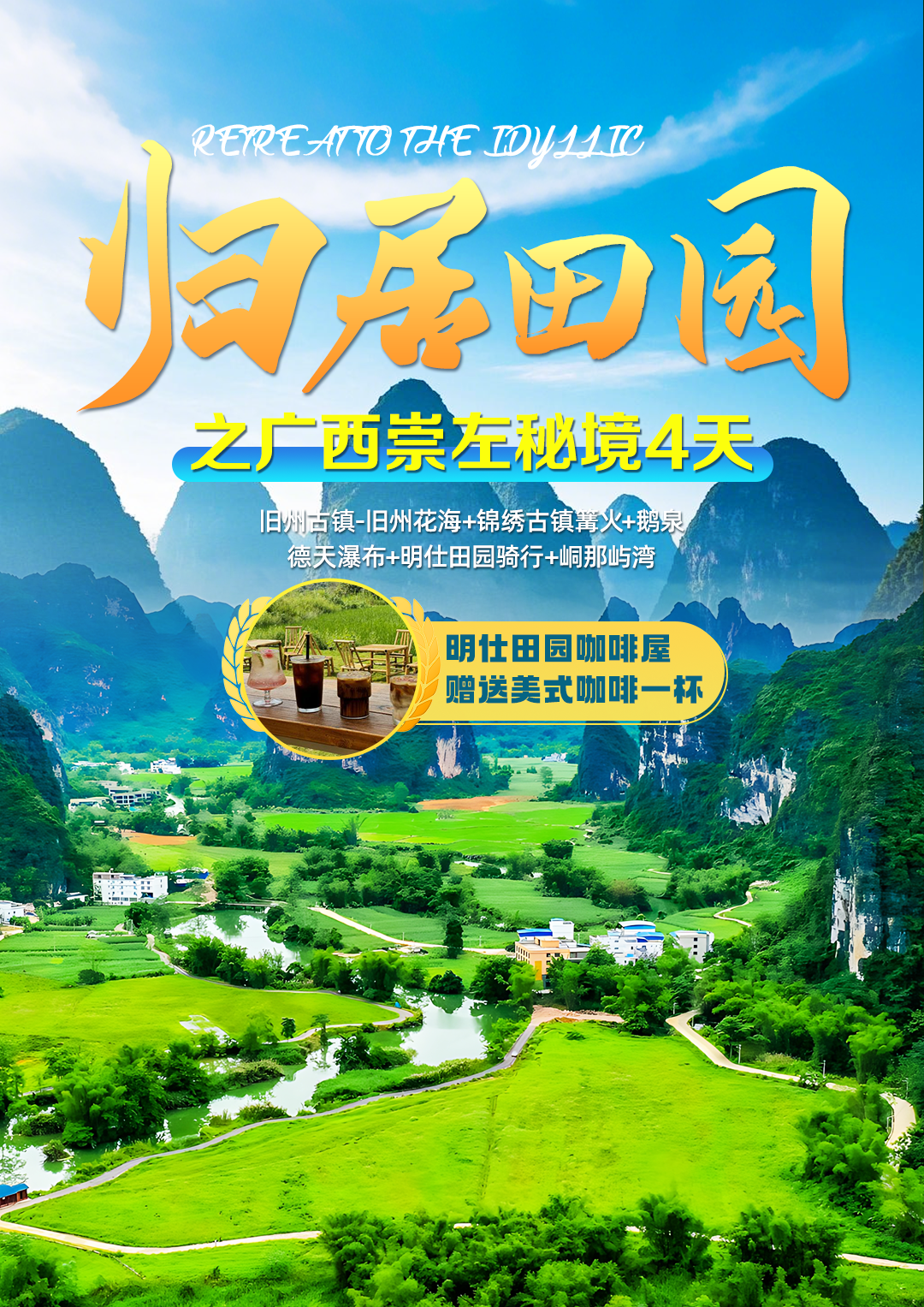 德天跨国大瀑布-明仕田园骑行-赠送稻田咖啡