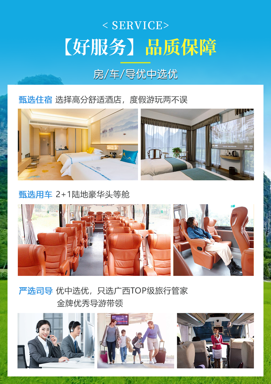 晚上自由寻觅广西美食。温馨提示:自由活动期间,导游司机不陪同,请您在自由活动注意安全。