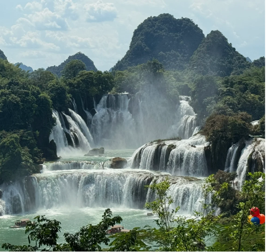 早餐后游览【德天跨国大瀑布】(游览约 2.5 小时,含接驳车,不含景区电瓶车10元/人,不含竹筏48元/人)位于广西壮族自治区崇左市大新县硕龙镇德天村,中国与越南边境处。瀑布气势磅礴、蔚为壮观,与紧邻的越南板约瀑布相连,是亚洲第一、世界第四大跨国瀑布,为中国国家 AAAAA级旅游景区。 还是《酒是故乡醇》和《花千骨》的外景拍摄地,神奇而美妙。