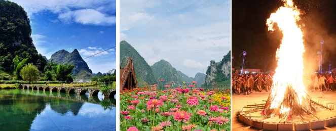 晚上探索壮乡夜文化【锦绣古镇篝火】(游览时间60分钟)戏曲与美食交融,打造沉浸式体验性夜间文旅消费新场景,让靖西的夜充满魅力和活力。(该景点为免费赠送景点,如遇天气 或其他原因,篝火无法举行,费用不退。)