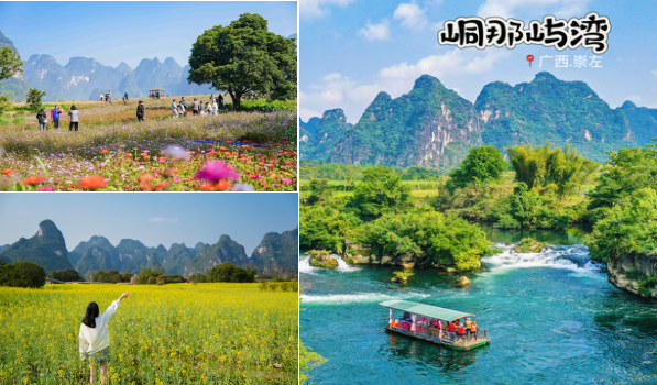 早餐后游览【船游峒那屿湾】(游览约 1.5 小时)拥有纯美秀丽的喀斯特山水风光,河水悠然,水质清澈,竹林茂盛。黑水河在此绕了一个近 360 度的大湾,两岸青山倒映在水中,山水相映成黛色。主要景观集中在水上幻境、龙碧滩等八处,人称 “峒那屿湾八景” 。水上幻境浓雾笼罩,如仙境一般;龙碧滩叠瀑群湍急起伏,壮观又清新。