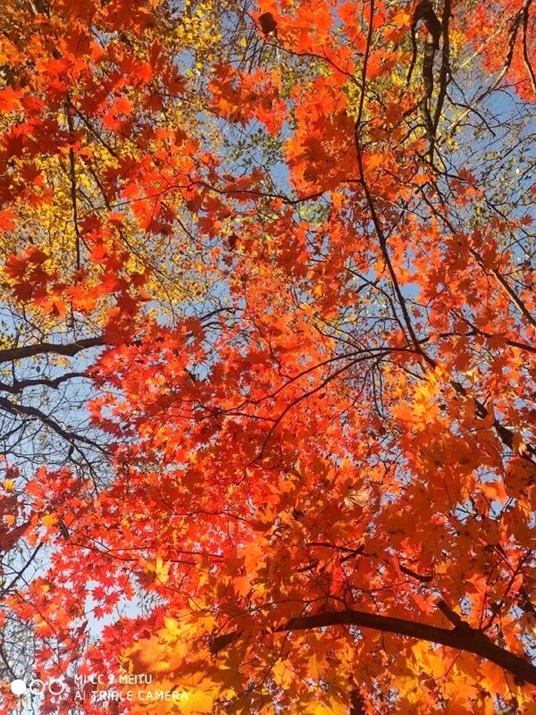 抬眼望去,层层叠叠的枫叶红得浓烈