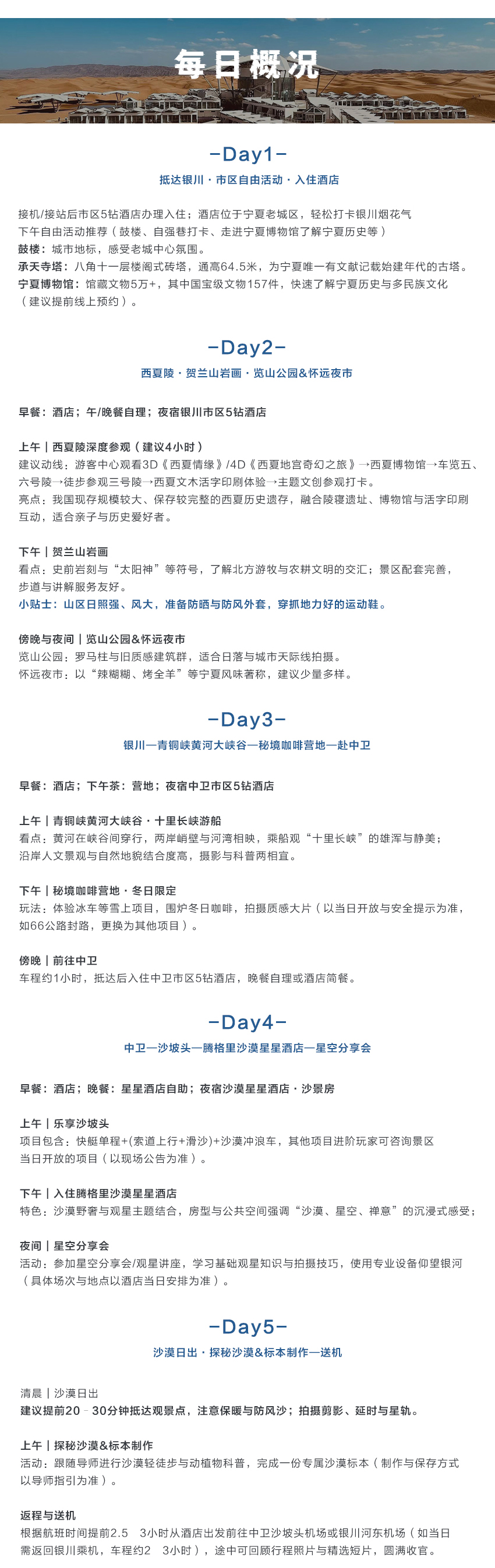 【集合地点】银川市区指定酒店(凭“冬日宁夏+姓名”报到入住)