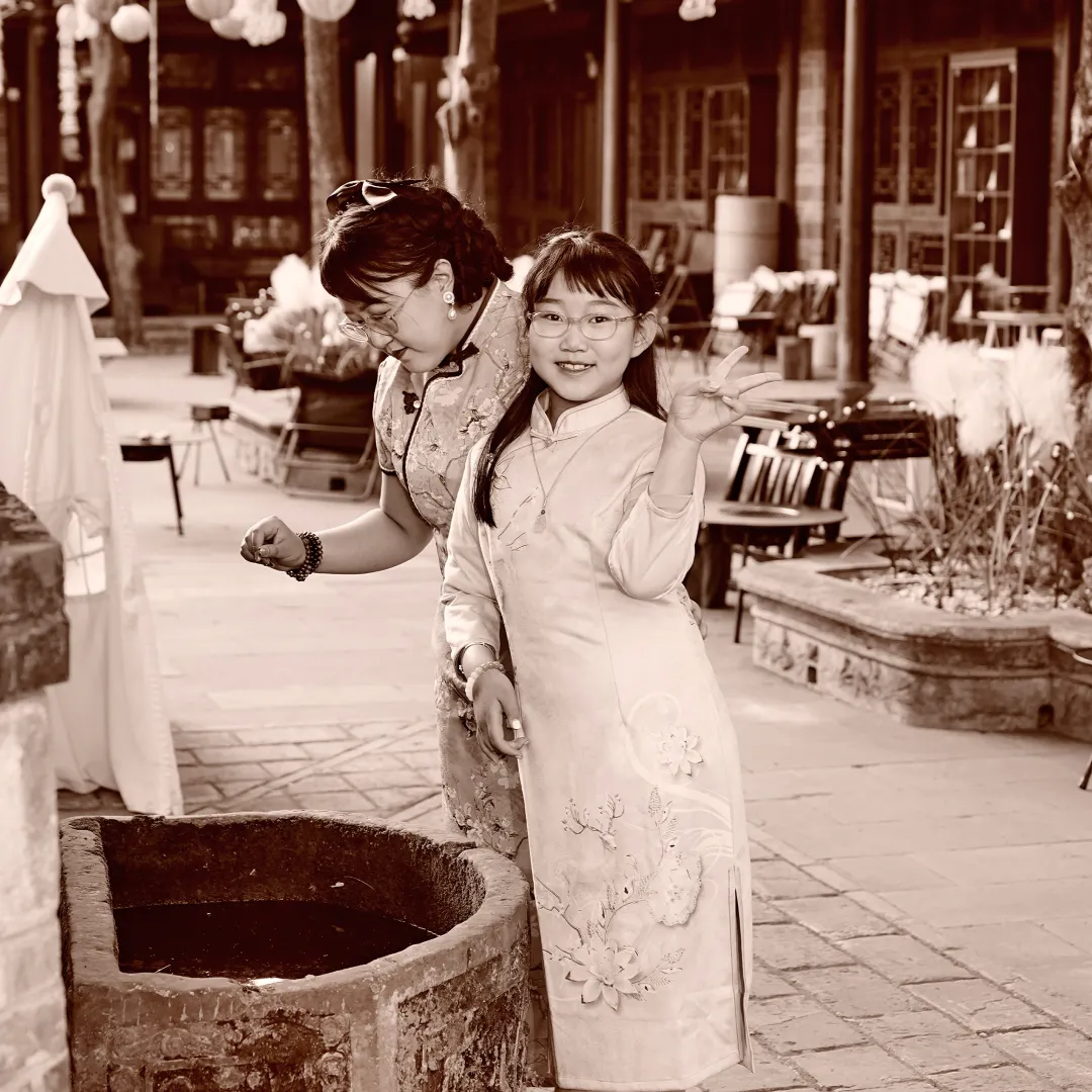 在这里,您与孩子将化身“民国亲子学堂”里的先生与学童,在百年公馆的实景中,共同换上精致的亲子旗袍、长衫。这是一场温馨的亲子协作,当您为孩子细心盘上盘扣,孩子为您端正戴上怀表时,不仅能收获亲子互动的欢笑,更能在民国风情的浸润中,为孩子种下历史美学的种子