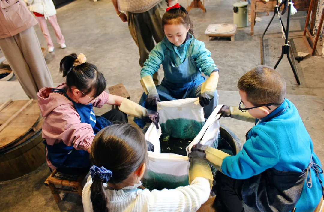 在安仁古镇的“名门”——【青红染】,你们将成为“小小染布匠”,在百年庄园的沉淀中,亲手扎结棉布、浸入传承的靛蓝染缸。亲子共创一件属于自己的扎染艺术品,和萌娃一起体验民间艺术魅力,不仅能收获创造的喜悦,更能亲身感受传统技艺的生命力