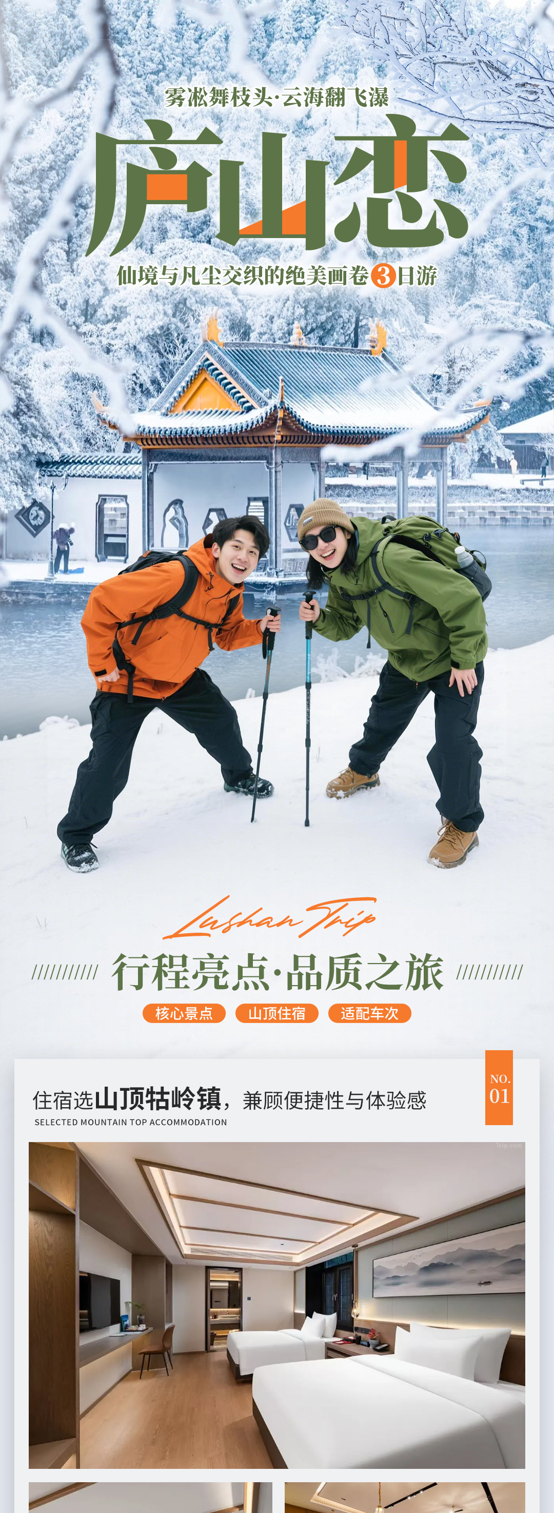 13:30 - 15:00:参观美庐别墅,这里曾是蒋宋故居,建筑融合中西风格;随后去庐山会议旧址,了解近代历史。