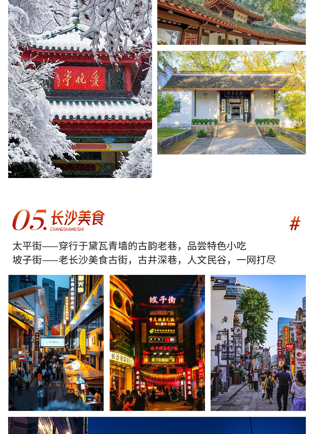 14:00餐后集合前往长沙,全程高速约2小时,到达长沙入住酒店,晚上自由逛夜市街,品长沙美食。
