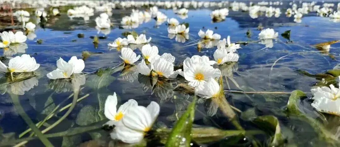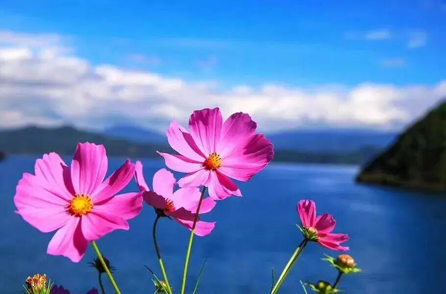 春暖花开的季节,天空蔚蓝、湖水清澈