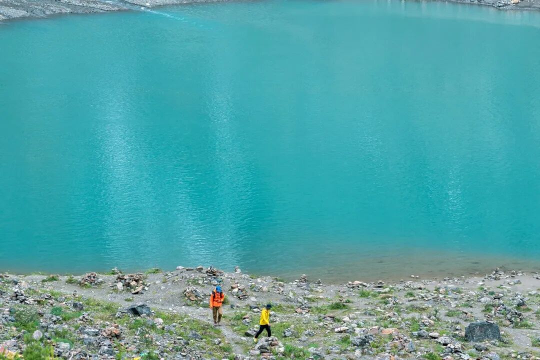 进入原始森林,而后继续前行,到达【笑农大本营】,这里原是中日联合登山队攀登卡瓦格博峰的营地。午餐补充体力后,继续出发抵达【冰湖】。