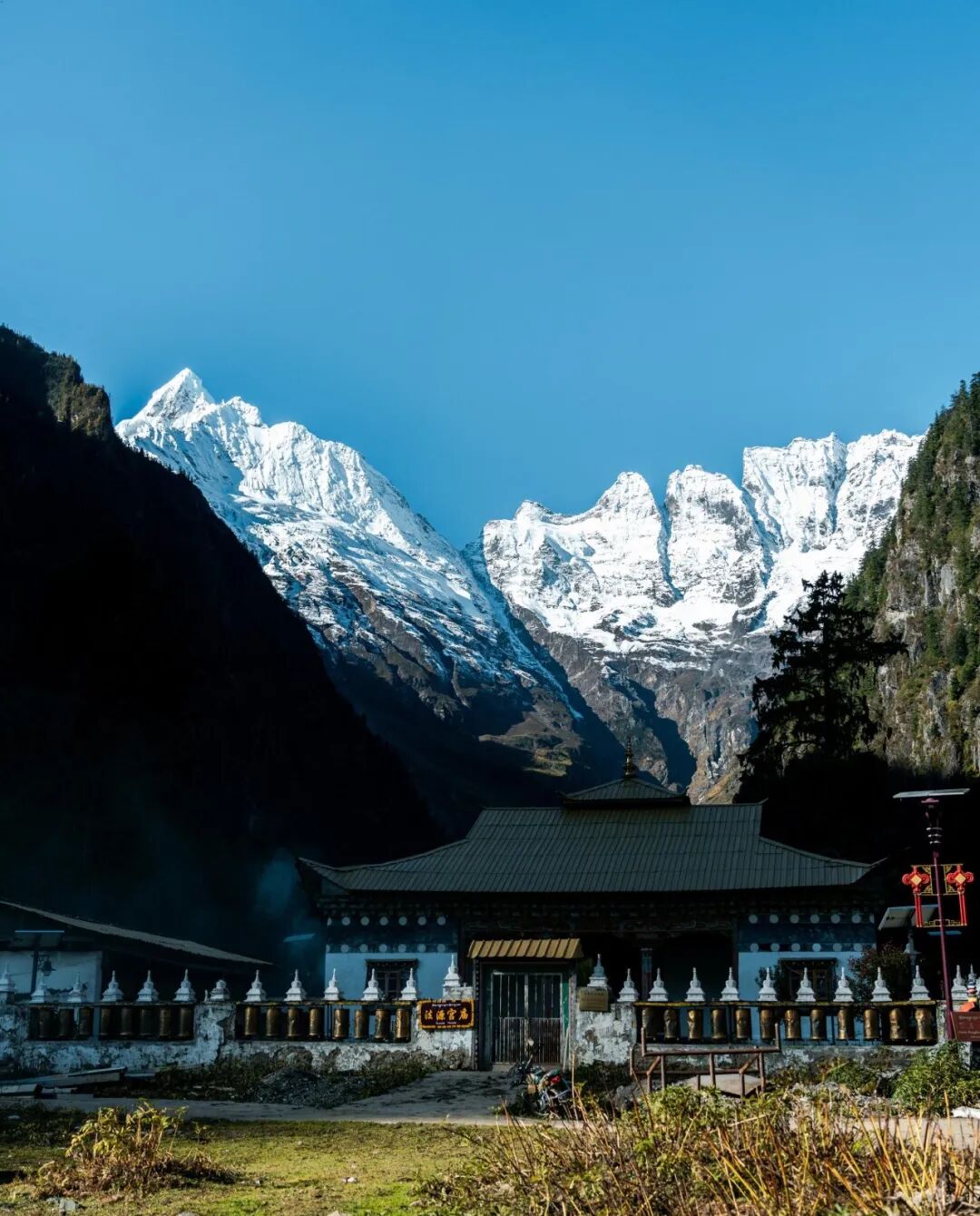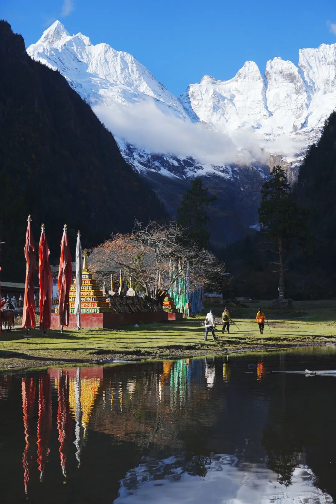 这里可以观看神女峰和五冠峰的全貌,更重要的是这里是朝圣者接受洗礼的地方,只有接受过神水的洗礼,整个朝圣之旅才算是完整,身体和心灵都得到净化,而后我们将原路返回雨崩村客栈休息。