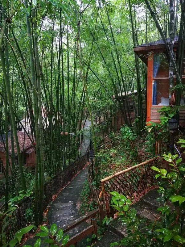 竹园的住宿都是由一栋栋木屋搭建的小别墅构成,没有相同的两栋房子,每间房子风格不一。分别配备观景台、卫生间、空调、榻榻米、麻将桌、泡澡盆等