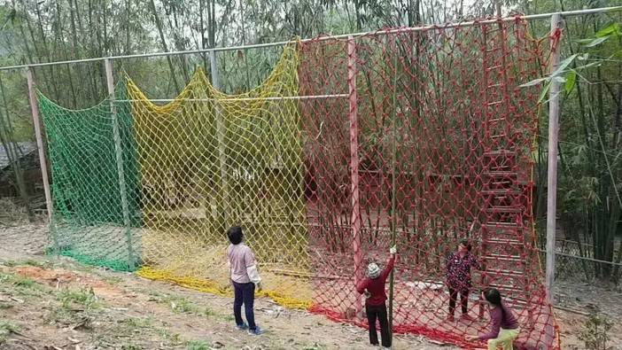 十余个户外拓展项目,攀网、秋千、跷跷板、天梯等;