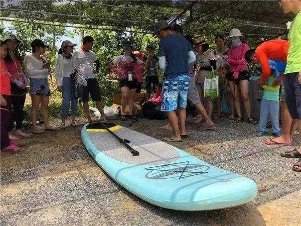 13:00吃饱喝足休息一下,然后在活动场地,活动教练给队员们分享讲解桨板的操作技巧和安全注意事项等。