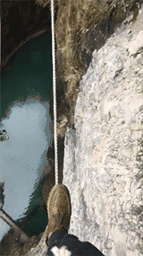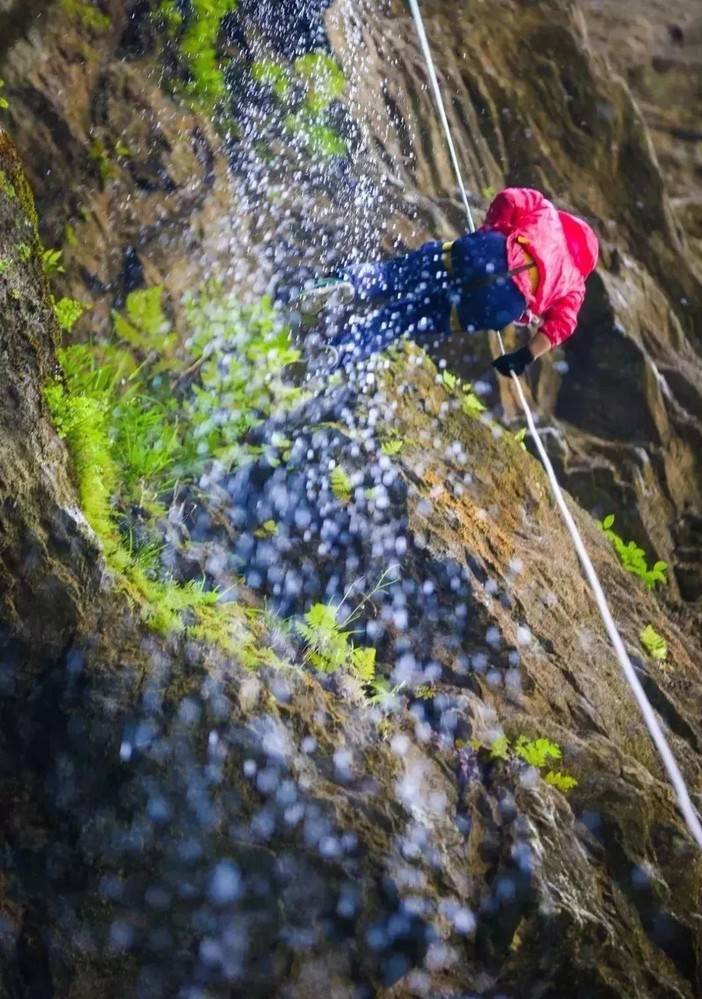 本项目在户外运动中称为绳降,因项目点在雨季时会形成瀑布,也可称为瀑降。项目垂直高度42米,系统承重达到17吨,并采用上方顶绳保护作为安全备份,即无论是承重量,包括体验者出现的操作失误,均具备了足够的安全保障。