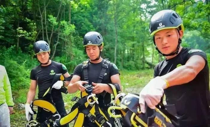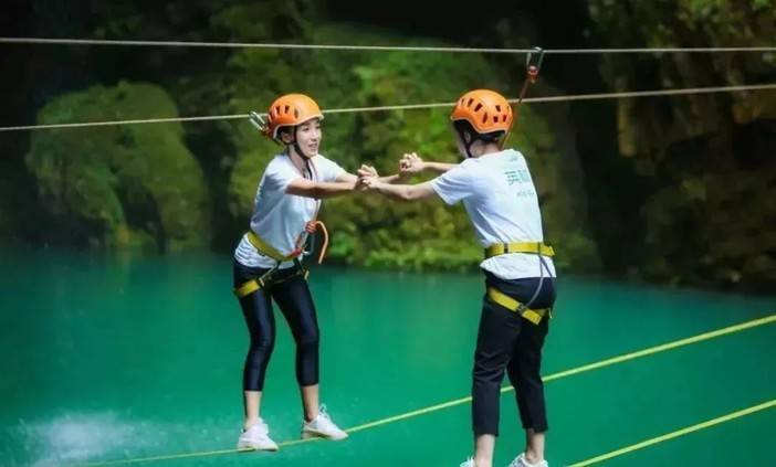 10:10开始按排队顺序轮流进行大秋千、垂直极限(彩虹瀑降)、洞穴探险(含跳楼机)、悬崖漫步、水上扁带等项目体验;