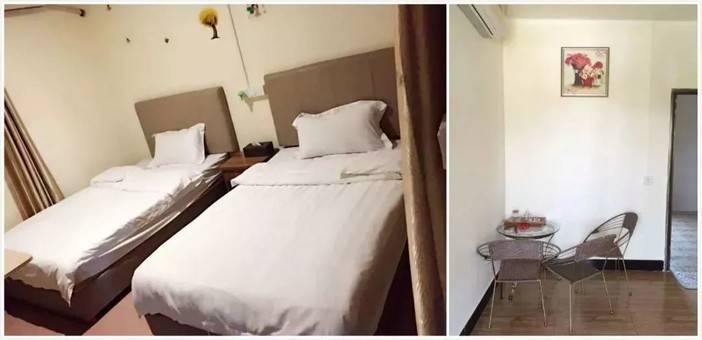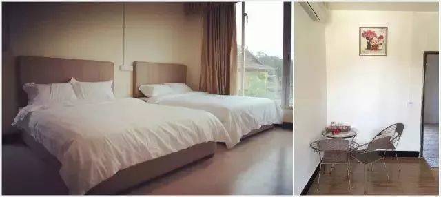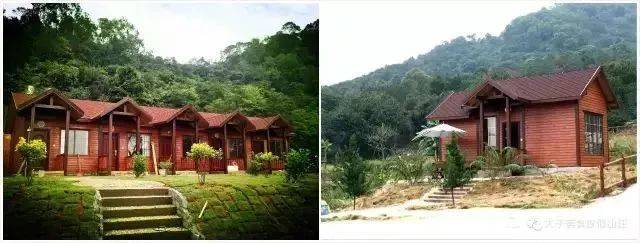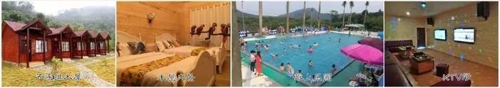 【住】主题木屋、半山木屋、亭园木屋、温泉套房、KTV套房、标双(山庄房间34间34床,可接待50人以下团队入住)