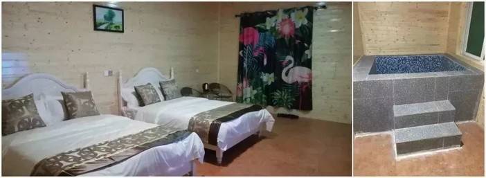 ▲温泉美式木屋(1.2双床,独立卫生间,带温泉池)