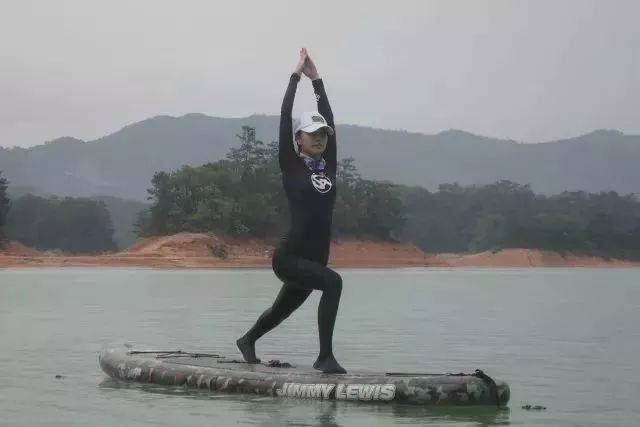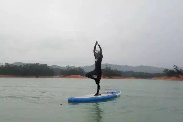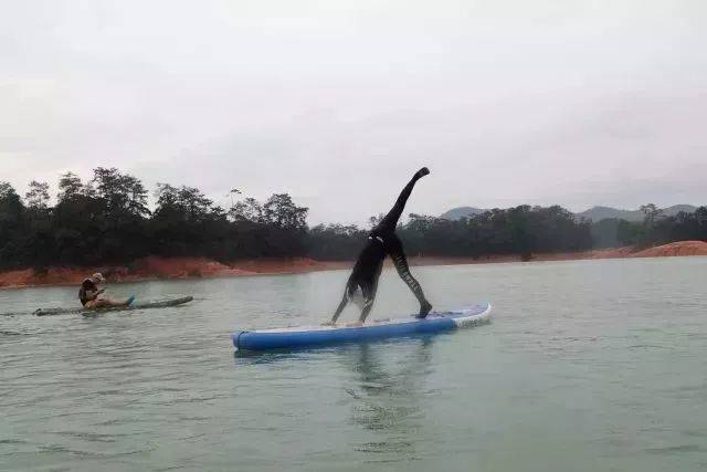 会玩瑜伽的女士,可以利用SUP桨板到开阔的湖面上进行水上瑜伽。