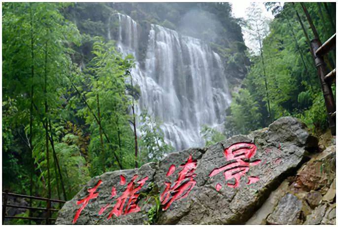 千泷沟大瀑布旅游区是个亲山、亲水、亲竹、亲石的旅游区。区纵深约3公里,一路诗情画意。主要景点有仙人脚印、茅坪古村、竹海闻莺、红梨(利)木王、石虎饮潭、小泷石洞、汇泷潭瀑、石锅煮泉、幽谷翠溪、百步云梯、千泷大瀑布等。最壮观的是千泷大瀑布,落差80多米,宽度290多米瀑布成排,飞流直下,响声震谷,水雾迷漫,气势非凡,堪与黄果树瀑布媲美。此处长期闭塞,生态环境保护完好,负氧离子含量达每立方厘米10万个单位,有天然氧吧之称。