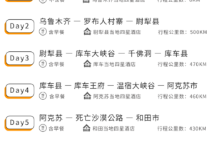 1.全程8晚住宿:乌鲁木齐当地四星酒店1晚,尉犁当地四星酒店1晚,阿克苏当地四星酒店1晚,和田当地四星酒店1晚,库车当地四星酒店1晚,喀什当地五星酒店2晚,塔县当地三星酒店1晚;