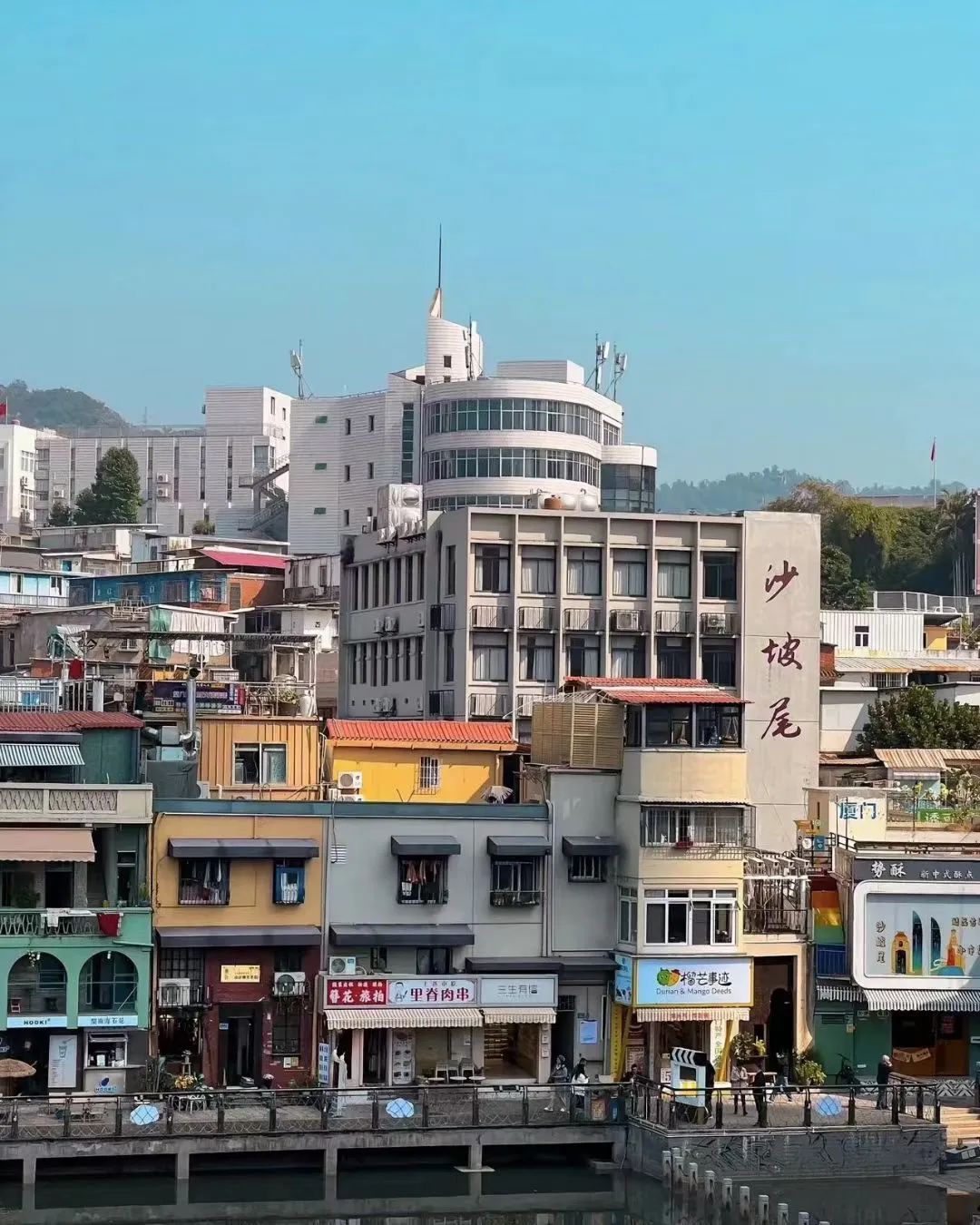从顶澳仔猫街漫步15分钟就可以到达沙坡尾,期间会经过厦门世茂双子塔,两栋大厦鹤立鸡群,直插云霄。