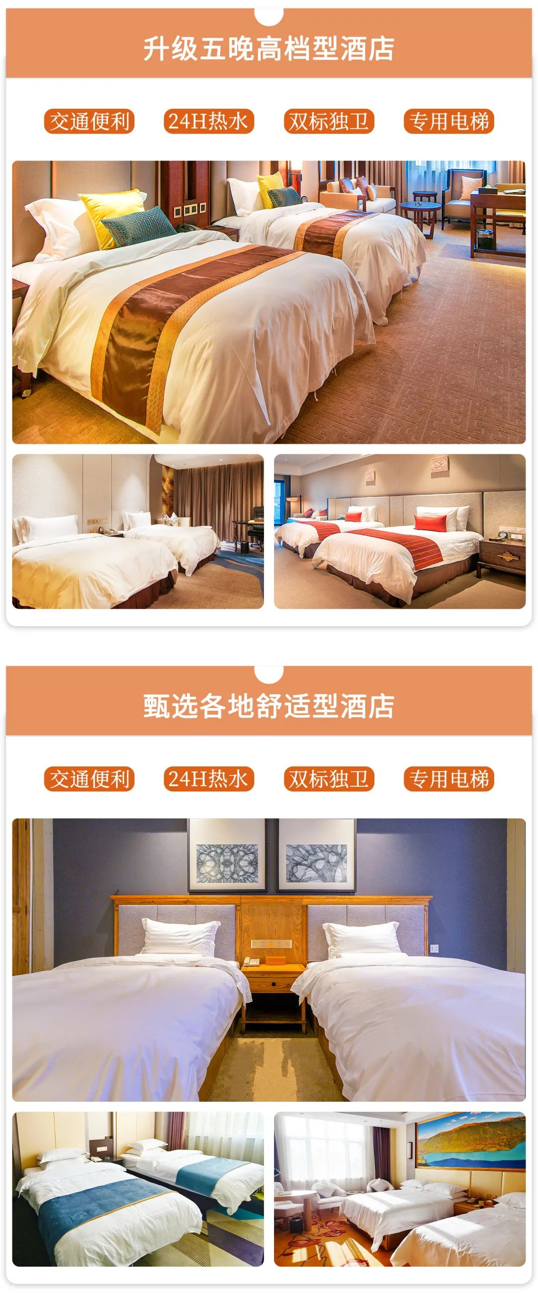 3:住宿:全程共8晚住宿(高档型为携程四钻或当地四星,舒适型为携程三钻或两钻或当地三星)