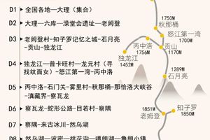 浏览重点:怒江第一湾、石门关、雾里村、秋那桶、那恰洛大峡谷、滇藏界、大流沙
