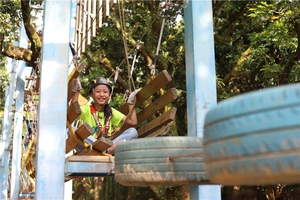 空中冒险岛分为两层,第一层具有挑战性,第二层具有突破性,挑战者们需凭借自己的身体和智慧,绕过重重的障碍物。挑战的同时,还可以锻炼其协调、平衡、力量、耐力等素质,培养孩子敢于尝试、勇于探险的品质!