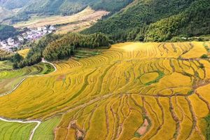 10:35-14:30 黑山梯田,跟着领队沿乡间小路步行15分钟,漫步在金灿灿梯田间,眺看层层叠叠的梯田。