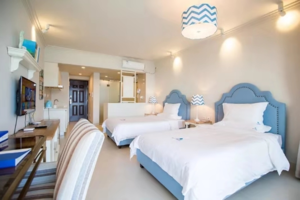 暑假旺季可能安排不到同一栋楼酒店,所以房间装饰都会有一点小区别,保证每间房间前方看海并无遮挡(正面看海)