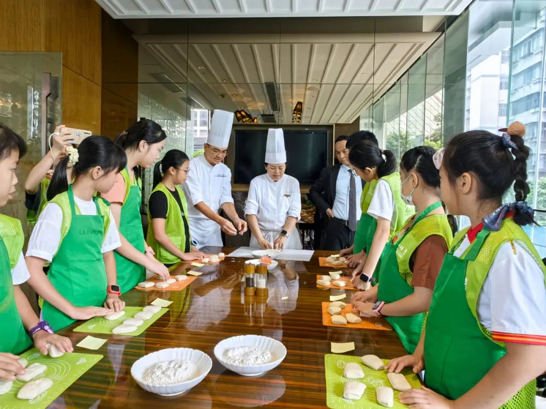 了解法国国民面包——法棍,并跟随法式大厨体验制作法式面包,提高学生的动手能力;