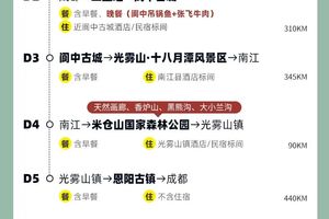 纯玩散拼价:成都1晚4钻酒店+3晚舒适型酒店,2780元/人,单房差700元/人;光雾山镇升级1晚轻奢型住宿+200元/人。