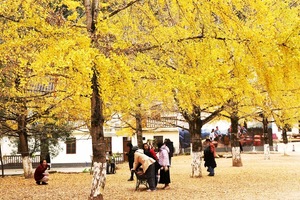 金秋的银杏是一种光彩夺目的美,是激漾心灵的美